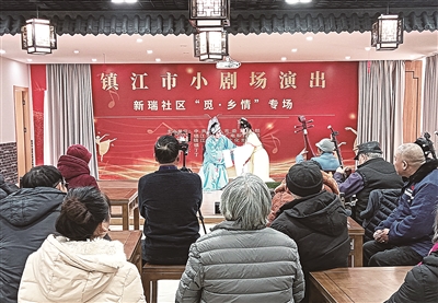 本报讯(许倩 记者 潘宇琴)新年之际,镇江经开区丁岗镇新瑞社区携手文心扬剧团举办“齐聚元旦,戏曲迎春”活动(见图 许倩 摄),在喜庆的氛围中,为当地居民献上了一场精彩的戏曲盛宴,将“文化大餐”送到了群众家门口。