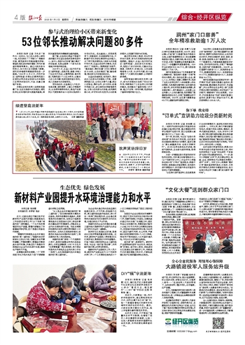 迎着鲜艳的退役军人志愿服务队旗,从滨江大道到新港小区,志愿者们认真清扫路面垃圾、清理小广告,积极向群众宣传环保知识和节前安全经营、用气用火用电小常识,展现了武桥村“续写戎光”退役军人志愿者的责任与担当。“定期举办的志愿服务、座谈会等活动让我们获得了认同感和归属感。”武桥村退役军人赵成祖谈到新提升的退役军人服务站,忍不住竖起大拇指,连连点赞。