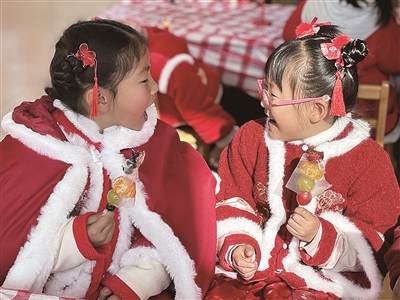 2024年12月31日,丹徒区上会中心幼儿园开展“逛庙会,扬民俗,品年味”活动。活动不仅有做皮影、剪窗花、写“福”字、捏面人等民间艺术,还有糖画、冰糖葫芦、关东煮等风味美食……孩子们手拿游园卡,穿梭在各个“庙会”场景中,迎接新年。