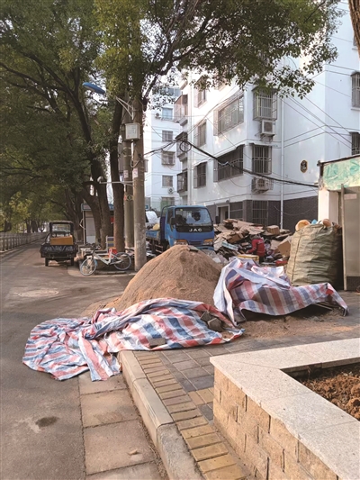 当天,记者在现场看到,在已经完成旧城改造的居民楼之间,这处“隐藏”于义士路14幢楼下的废品收购站与周边的“焕然一新”相比起来,显得异常“突兀”。居民楼下,电动三轮车、卡车上面堆满了各种废品,磅秤、小秤一应俱全。在通道转弯处,几只大号蛇皮袋装满了废塑料,七零八落的塑料瓶、易拉罐、纸板等物品随意地堆放,原本好端端的街边通道,形成了垃圾堆,放眼望去,现场一片狼藉(见图 景泊 摄)。
