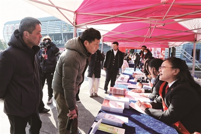 为做好春节后劳动者换岗流动高峰期和企业开工复产关键期就业服务工作,镇江经开区法院积极参与2025年春风行动专项服务活动,在镇江经开区人社局、妇工委等部门组织下,现场设置普法摊位,为求职者进行普法宣传,提供针对性的法律服务(见图 吴菲菲 翟进 摄)。