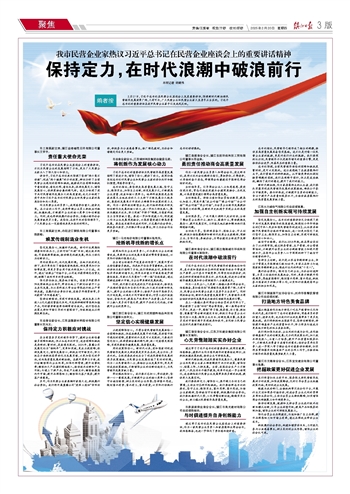 2月17日,习近平总书记在民营企业座谈会上发表重要讲话,强调新时代新征程民营经济发展前景广阔、大有可为,广大民营企业和民营企业家大显身手正当其时。习近平总书记的重要讲话在我市民营企业家中引发热烈反响。