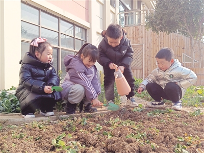 近日,市中山路中心幼儿园谏壁分园开展“童心寻春意,巧手绘绿意”活动。孩子们走进种植园,参与种植劳动,观察幼苗的生长,亲身感受春天的气息,在他们幼小的心灵中播下热爱自然的种子。