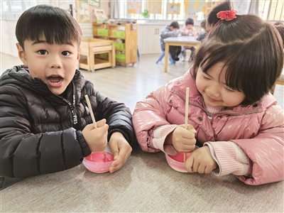近日,市中山路中心幼儿园仁章园区中四班开展了一场科学体验活动——玩转“欧不裂”。在老师的引导下,孩子们将玉米淀粉、水、颜料等材料混合搅拌,原本普通的液体逐渐变成既非固体又非液体的奇妙存在。