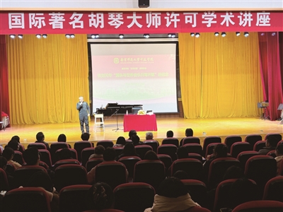 2月26日,中北学院音乐学院“正乐讲堂”开讲,当代享誉世界的胡琴大师许可应邀开设题为《谈刘天华“国乐与世界音乐并驾齐驱”的信念》的专题讲座,中北学院师生和丹阳市音乐家协会会员聆听了精彩讲座。