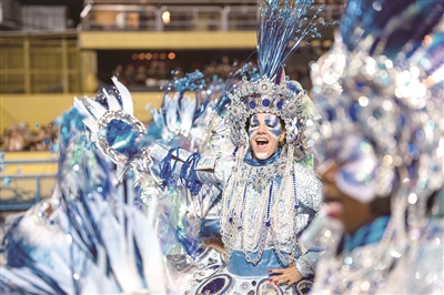 3月2日晚,在巴西里约热内卢的桑巴大道,桑巴舞校的演员参加狂欢节游行。