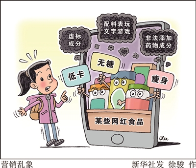 宣称“低卡、无糖、营养、瘦身”,近来一些网红食品打着健康卖点,迎合消费者心理,吸引了不少人跟风购买。但记者调查发现,一些网红食品虚标成分、配料表玩文字游戏,甚至非法添加药物成分实现所谓“减肥瘦身”等功效。消费者需擦亮眼睛,识别这些营销噱头和文字游戏,保护自身权益。