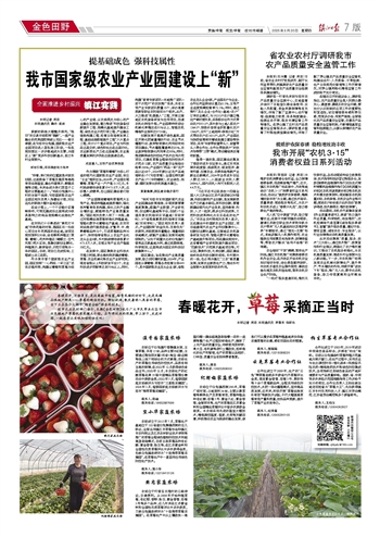 “习近平总书记在参加十四届全国人大三次会议江苏代表团审议时强调,科技创新和产业创新,是发展新质生产力的基本路径。抓科技创新,要着眼建设现代化产业体系,坚持教育、科技、人才一起抓,既多出科技成果,又把科技成果转化为实实在在的生产力。”市农业农村局相关负责人表示,正在建设中的国家农业产业园区,项目涵盖现代农业产业科创集聚中心、创新创业孵化基地、丘陵地区农机装备研发与应用、智能化数字化葡萄生产基地提升等项目。而在建设规划中,还有葡萄产业研究院提升建设项目、“四新技术”示范展示基地项目等。可以说,聚焦科技,扎根创新,园区建设始终站在科技创新的前沿,乡村振兴的一线,也必将为镇江“三农”高质量发展,发展农业新质生产力,推动乡村全面振兴发挥更积极的作用。