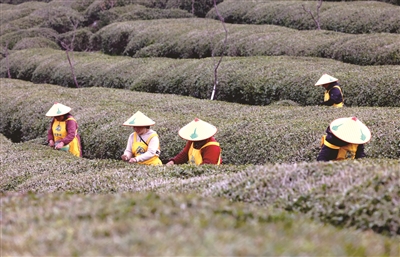 3月19日,采茶工在福建省福鼎市佳阳畲族乡一白茶基地采摘明前茶。春分节气将至,各地农民抢抓农时开展农事活动,田间地头一片忙碌。新华社发