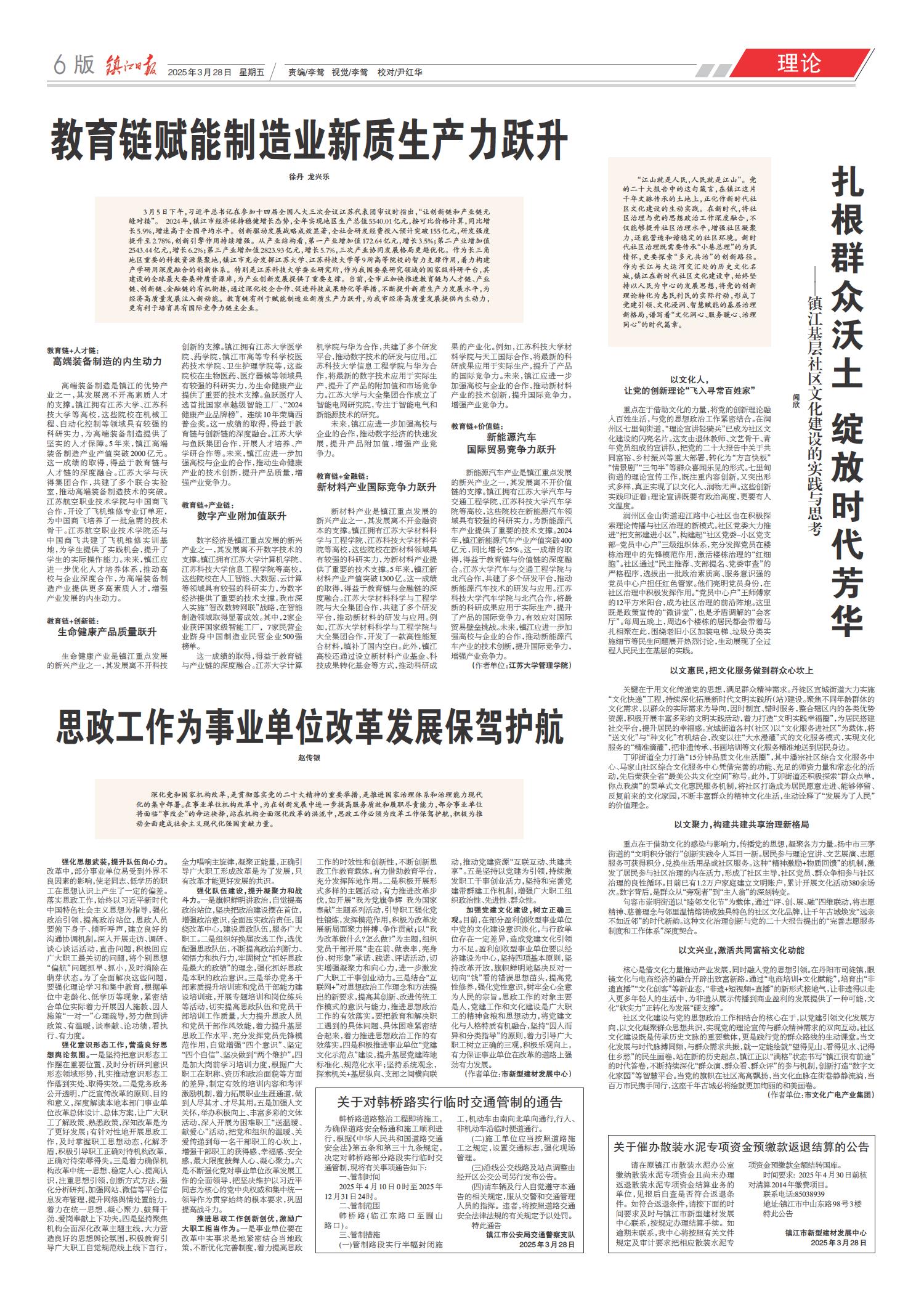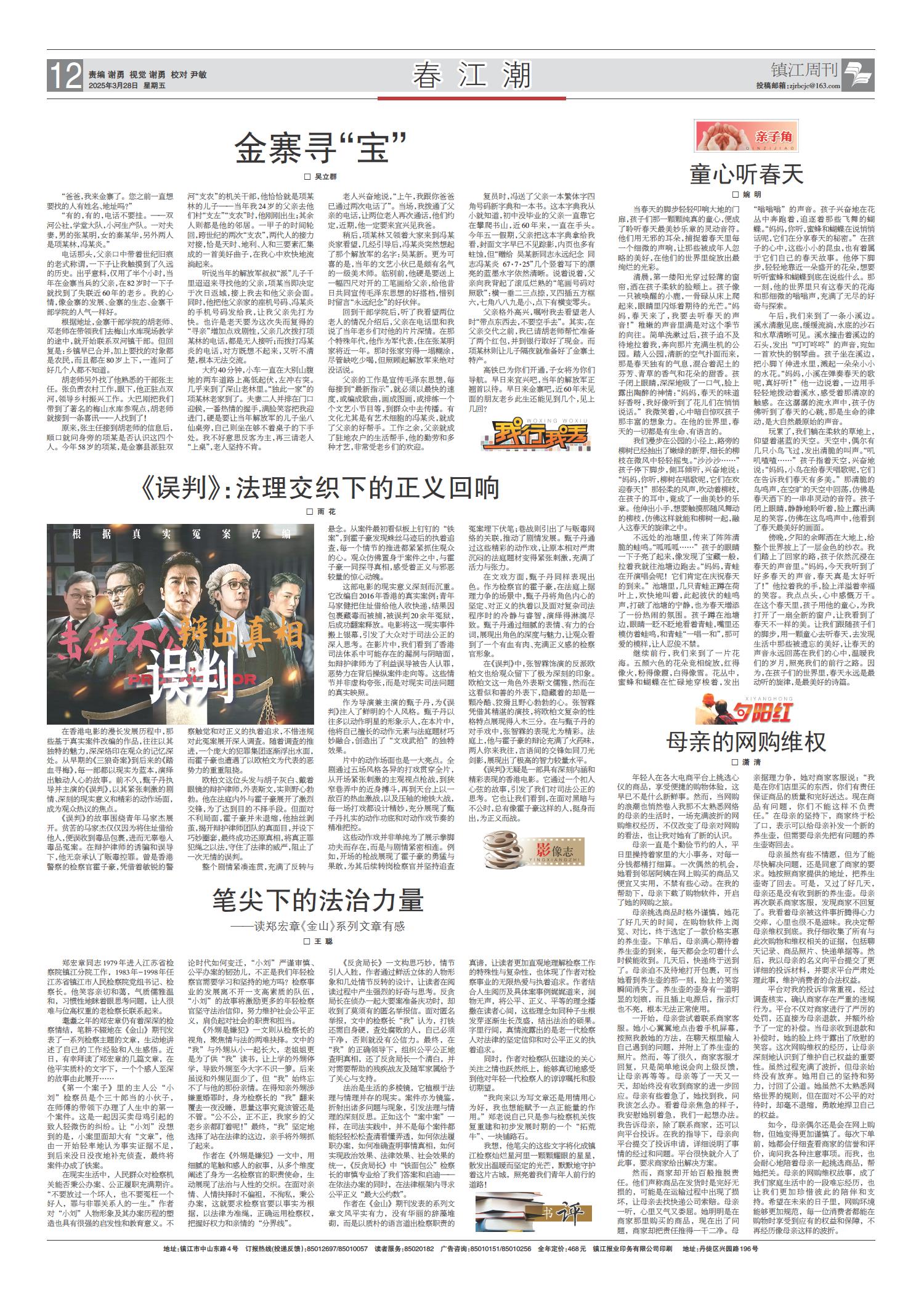 01 头版 02 要闻 03 要闻 04 经开区纵览·综合 05 丹凤朝阳 06 理论 07 时事 08 专版 09 镇江周刊 10 西津渡 11 芙蓉楼 12 春江潮