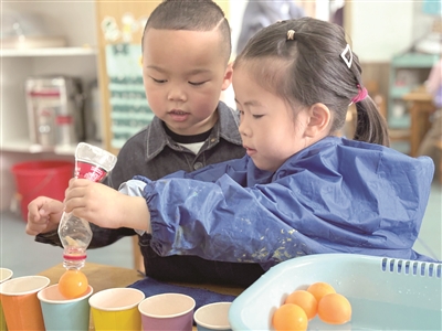 近日,市中山路中心幼儿园月湖园区的孩子们化身为“洞洞小侦探”,开启了一场妙趣横生的探索之旅。孩子们手拿矿泉水瓶,利用小小洞口吸取乒乓球,在游戏中不仅收获了快乐,更在观察、思考和实践中感受到了发现的乐趣。