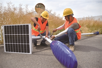 5月13日,施工人员为丹徒区谷阳镇镇南村曾韩片区连接谷阳大道的1.5公里村路安装太阳能光伏路灯。当日,该行政村6个片区33个村民小组的村庄干道全部通上了路灯。