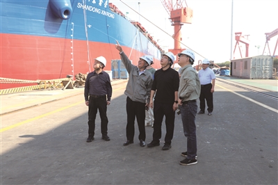 张皓玮定期走访新韩通船舶重工等重点企业,了解企业生产经营情况和发展需求。