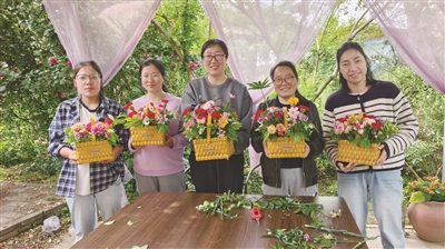 5月10日下午,丹阳市折柳中心小学教育工会以感恩母亲为主题,组织开展插花赏花艺术培训活动。在花艺师的指导下,教职工们将手中的康乃馨、月季、铁线莲、小雏菊等认真修剪构思、精心搭配创作,巧妙编织成各式各样的精美花篮,传递对天下母亲的祝福。袁军辉 摄影报道