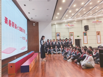 5月12日,句容市茅山中心小学面向五、六年级女生开展青春期女生健康专题讲座,帮助女生提高对青春期的认识,正确对待青春期的身体及心理变化。