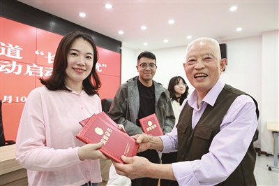 近日,京口区关工委组织大市口街道“长乐无忧”志愿者公益团队举行温暖助学启动仪式,现场签订温暖助学协议,向辖区贫困学子发放助学资金。从2025年起,“长乐无忧”志愿者公益团队将资助14名贫困学子每人每年1000元,至高中毕业。该公益项目旨在帮助他们顺利完成学业,健康成长成才。图为京口区关工委领导(右)向志愿者发放荣誉证书。