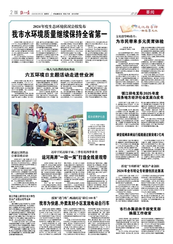 本报讯(李媛 记者 陶立波)6月4日下午,市生态环境局举行六五环境日新闻发布会,发布《2024年度镇江市生态环境状况公报》。数据显示,2024年我市地表水环境质量持续向好,全市国、省考断面优Ⅲ比例均为100%,继续保持全省第一(与南京、泰州、盐城并列)。
