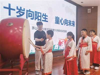 近日,句容市茅山中心小学三年级的学生们迎来了专属于他们的十岁成长仪式。孩子们在活动中体会到了成长的意义,留下了珍贵的回忆,为十岁年轮刻下了熠熠生辉的成长注脚。