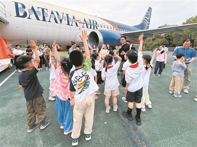 近日,市红旗小学党总支联合党建联盟单位江苏航空职业技术学院,开展“红色齿轮联动 家校社共助学生成长”活动,该校一、二年级部分学生在家长的陪伴下,走进江苏航空职业技术学院无人机与智能产业学院,观看无人机飞行表演、参观大飞机实训平台、参与无人机模拟飞行,感受航空科技的魅力。图为孩子们参加知识问答环节。杜楠 摄影报道