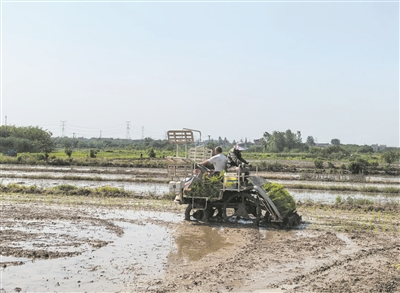 农机手在稻田中操控插秧机。巫琴 汪静 摄