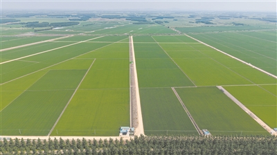 这是6月24日在黑龙江北大荒农业股份有限公司八五六分公司第六管理区高标准农田拍摄的水稻秧苗(无人机照片)。近年来,黑龙江垦区北大荒集团以保护黑土耕地,有效提高粮食生产能力为目标,用地与养地相结合,推动农业绿色可持续发展。“十四五”以来,北大荒集团年落实黑土耕地保护示范区1145.2万亩,累计实施保护性耕作4580.8万亩、有机肥深翻还田916万亩。 新华社发