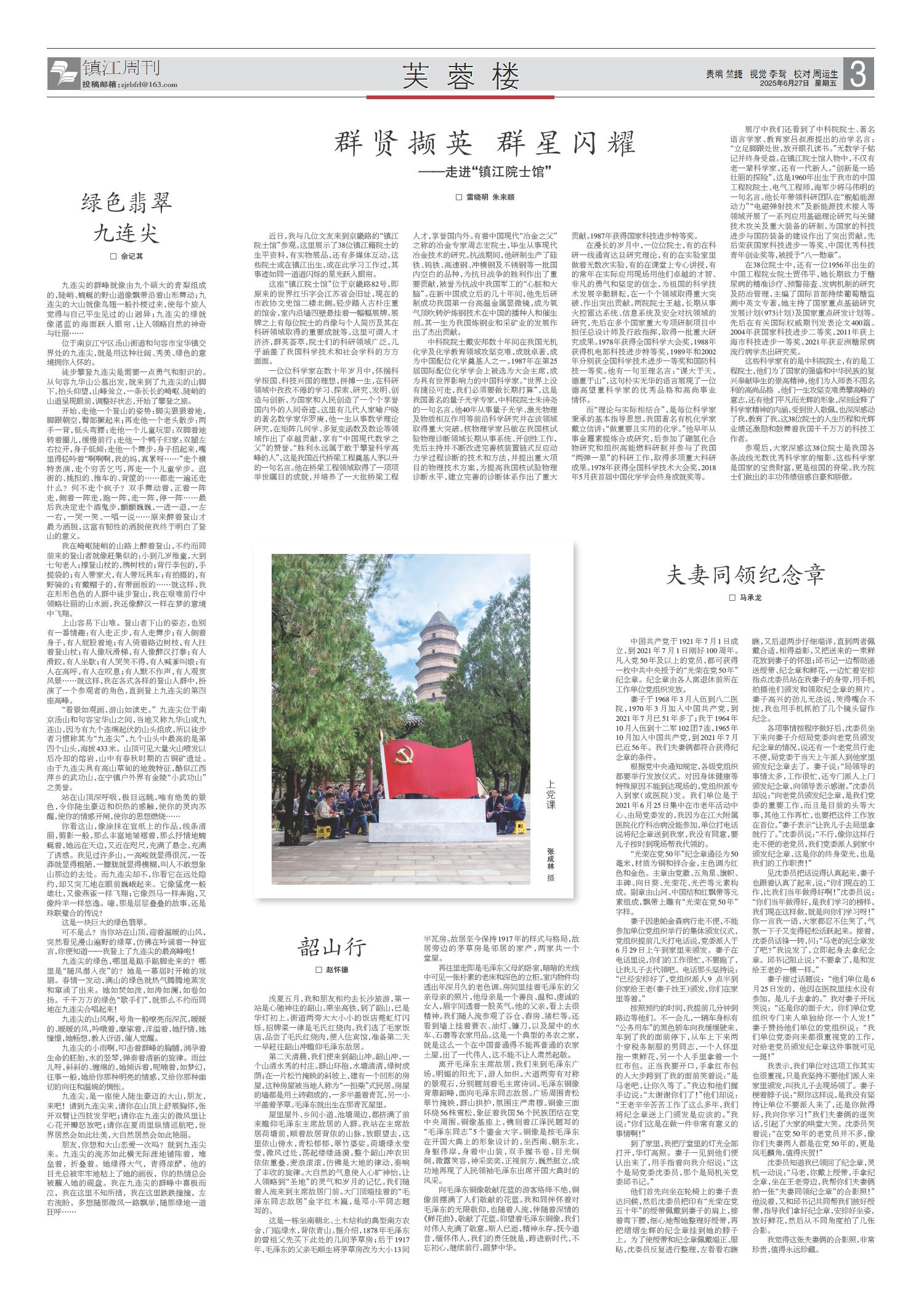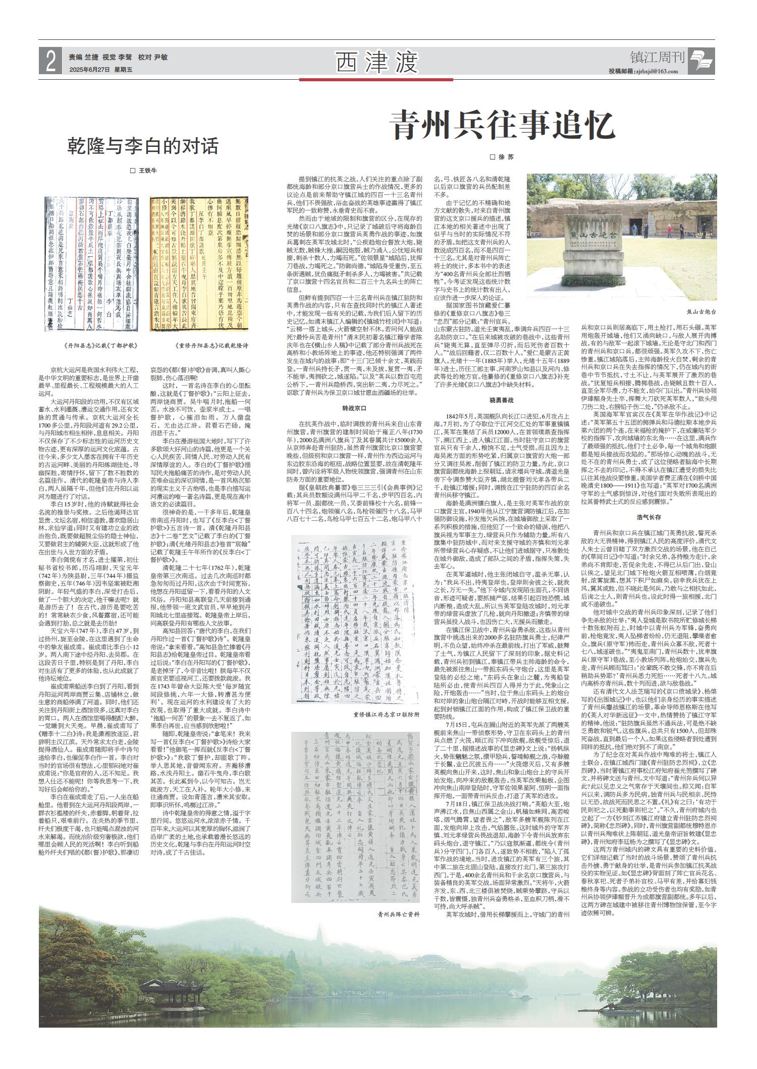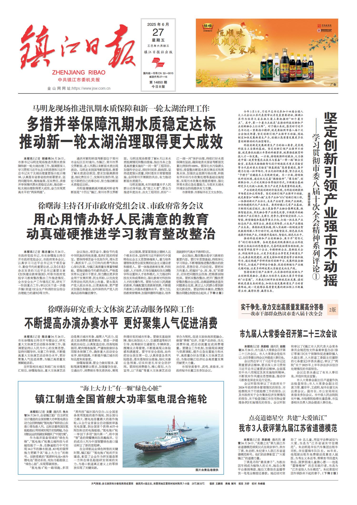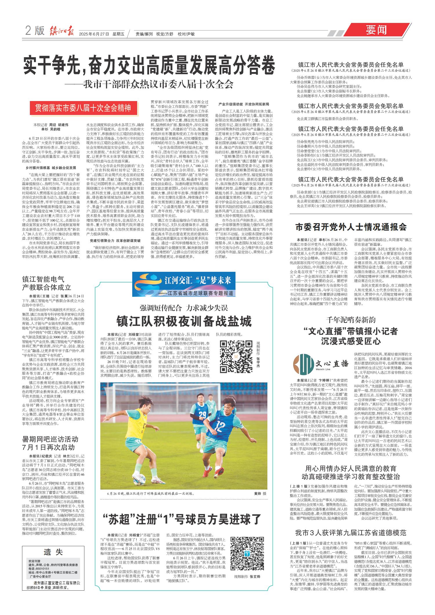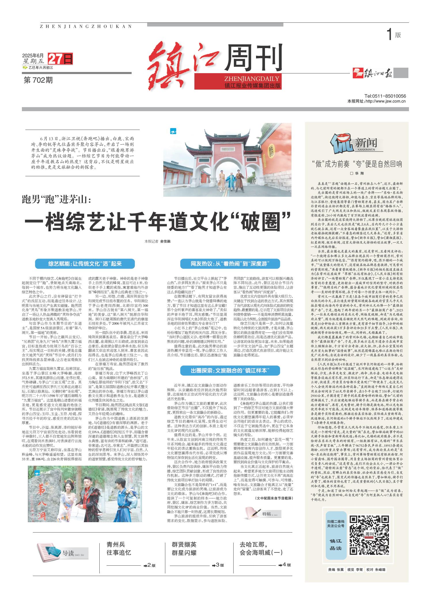 01 头版 02 要闻 03 丹凤朝阳 04 经开区纵览·专版 05 镇江周刊 06 西津渡 07 芙蓉楼 08 春江潮