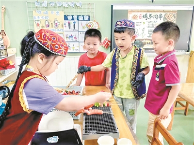 7月16日,市中山路中心幼儿园谏壁分园开展“游戏风采 童趣飞扬”活动。角色区里,幼儿扮作“小厨师”经营烧烤摊。美工区,孩子们用黏土精心制作大盘鸡,体验美食魅力。袁啸吟 蔡鑫雨 管奇璠 摄影报道