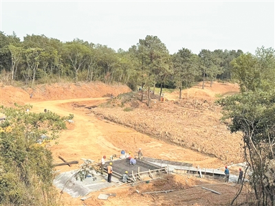 近日,笔者在云塘村水坝修缮施工现场看到,十几名工人正在坝底用石方加固堤坝、新建引水渠,挖掘机紧张有序地回填土方,呈现出一派热火朝天的繁忙景象。