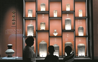 7月16日,参观者在汉魏洛阳故城遗址博物馆参观。
