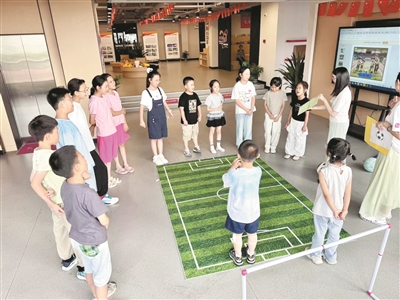 本报讯(李昂)近日,借着“苏超”的火热氛围,镇江经开区丁卯街道丁卯社区暑托班的运动场上,一堂“运动+英语”特色课正在火热进行(见图 李昂 摄)。“Pass! Goal!” 孩子们边踢足球边用英语欢呼,分组模拟“苏超”赛场攻防,跟着英文加油歌舞动,在奔跑欢笑中让语言学习变得鲜活有趣。