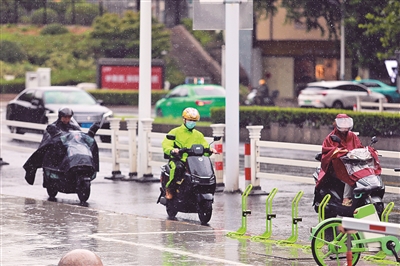 7月30日,受第8号台风“竹节草”影响,全城出现风雨天气。街头行人撑伞疾行,电动车穿梭雨中。当日气温骤降至25℃。黄帅 摄影报道