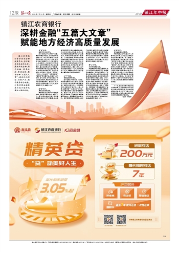 镇江农商银行紧扣国家金融政策导向,坚守服务实体经济本源,聚焦科技金融、绿色金融、普惠金融、养老金融、数字金融“五篇大文章”,通过优化供给、创新产品、提升服务综合效能,以高质量金融服务为地方经济发展注入强劲动能。