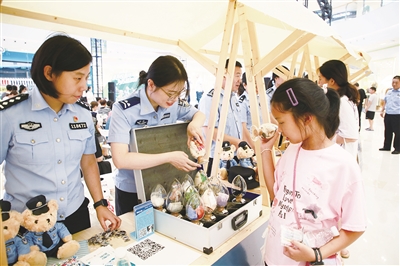 日前,扬中市公安局在吾悦广场中庭举办“倾警全力 守护当夏”警务夜市集中宣防活动。活动现场,反诈、禁毒、交通安全、网络安全等多个宣传板块“摆摊设点”,通过展板、宣传手册、互动体验等群众喜闻乐见的方式,向市民普及安全知识,增添“平安底色”。邹文倩 摄影报道