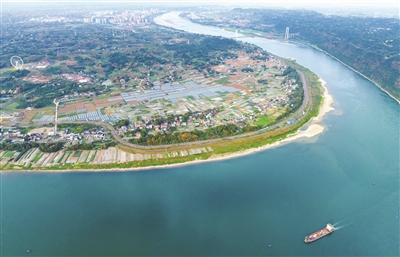 在长江村,成片农田整齐排列,与“长江第一湾”交相辉映。 宜宾融媒记者 庄歌尔 摄