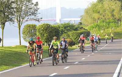 环长江生态绿廊吸引了众多骑行爱好者 罗平 摄