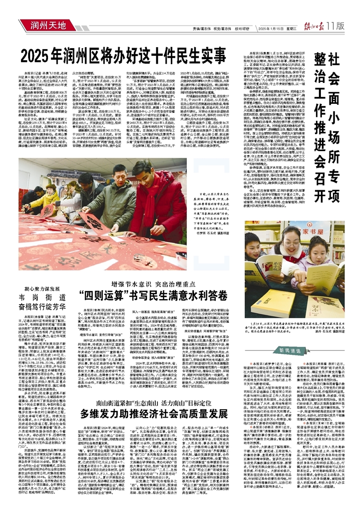 - 2025年润州区将办好这十件民生实事 本报讯(记者 孙晨飞)日前,在润州区第十届人民代表大会第四次会议第三次全体会议上,经过全体区人大代表票决,确定了润州区政府2025年度十项民生实事项目。 基础教育保障工程,总投资800万