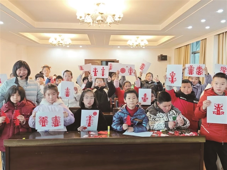 近日,扬中市图书馆邀请扬中剪纸非遗传承人为青少年讲述剪纸的历史和文化,传授基础的剪纸技巧。活动中,25组家庭齐聚一堂,孩子们在剪纸老师的指导下,一幅幅形体优美、姿态各异的剪纸作品“生命树”便诞生了。青晨 摄影报道