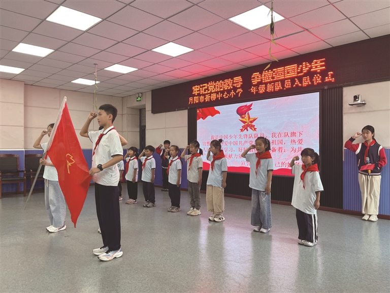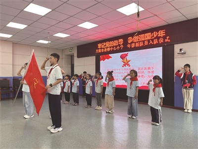5月26日上午,丹阳市折柳中心小学开展“牢记党的教导 争做强国少年”一年级新队员入队仪式。孩子们戴上红领巾、互敬队礼,红色梦想就此播种在新队员心中。袁军辉 摄影报道