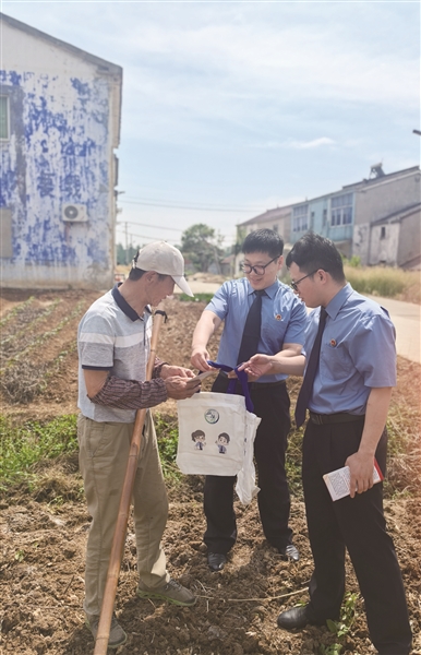 本报讯(舒申松 记者 张驰川)今年5月是《中华人民共和国民法典》施行后的第五个“民法典宣传月”。近日,丹阳市检察院民事检察部门干警深入田间地头、村头巷尾,向群众发放民法典宣传手册。