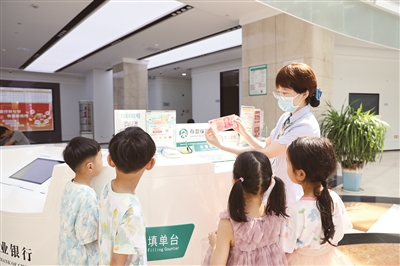 近日,农业银行镇江丹阳支行举办“小小银行家,农情伴成长”活动,40多位小朋友在老师的带领下来到营业网点参观智能化服务设备。网点工作人员向小朋友们讲解点钞技能,宣传爱惜使用人民币及防范识别假币等金融知识。