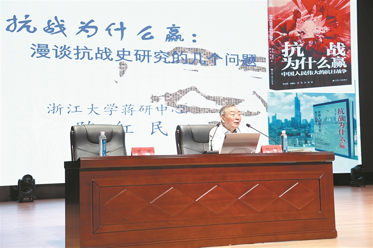 8月5日上午,由省总工会主办,市总工会承办的“名家名作——职工阅读面对面”省级示范活动在市工人大剧院举行。浙江大学陈红民教授以《抗战为什么赢:漫谈抗日战争史研究的几个问题》为题,为听众系统解读了抗战史研究核心命题,带领大家重温红色记忆,传承红色文化。张玄烨 摄影报道