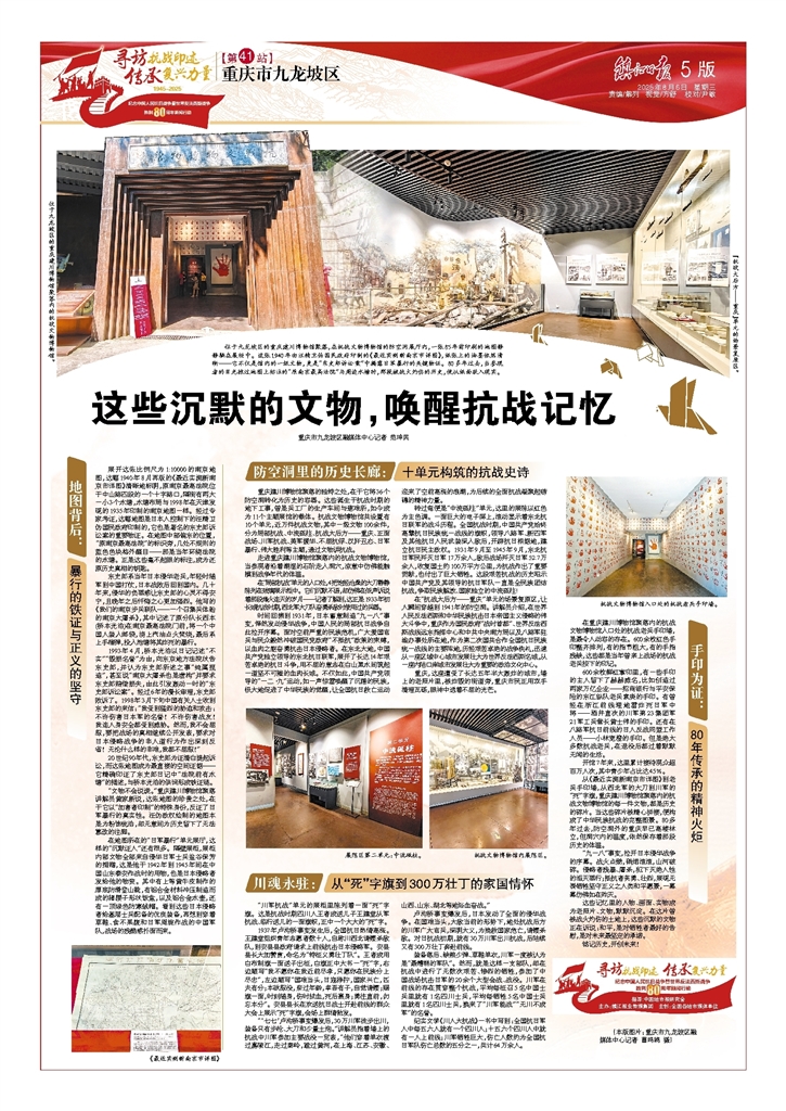 从《最近实测新南京市详图》到老兵手印墙,从西北军的大刀到川军的“死”字旗,重庆建川博物馆聚落内的抗战文物博物馆的每一件文物,都是历史的碎片。当这些碎片被精心拼接,便构成了中华民族抗战的完整图景。80多年过去,防空洞外的重庆早已高楼林立,但洞穴内的温度,依然保存着那段历史的体温。