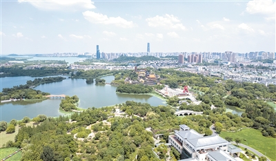 夏日的镇江,蓝天白云相映,绿水青山相依,一片生机勃勃的美好景象。