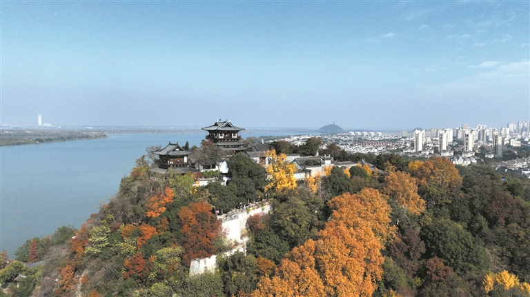 初冬时节,镇江北固山脚下的长江路与滨水路绿意未褪、色彩斑斓。梧桐金黄,香樟苍翠,点缀着火红的枫叶与常绿灌木,犹如大自然打翻的调色板,将古城冬日渲染得明艳动人。 崔世林 摄