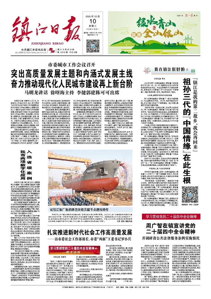- 扎实推进新时代社会工作高质量发展 本报记者 胡建伟 “党的二十届四中全会对完善社会治理体系作出顶层设计,部署‘十五五’时期社会工作一系列重点任务,明确了未来一个时期社会工作的目标方向与