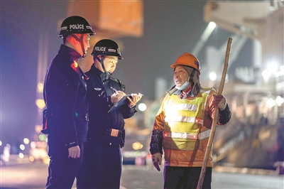 新年伊始,长江航运公安局镇江分局镇江派出所民警坚守一线,对镇江经开区沿江码头进行夜间安全生产巡查与服务,全力护航辖区水域经济开年平稳运行,保障重点物资运输畅通。