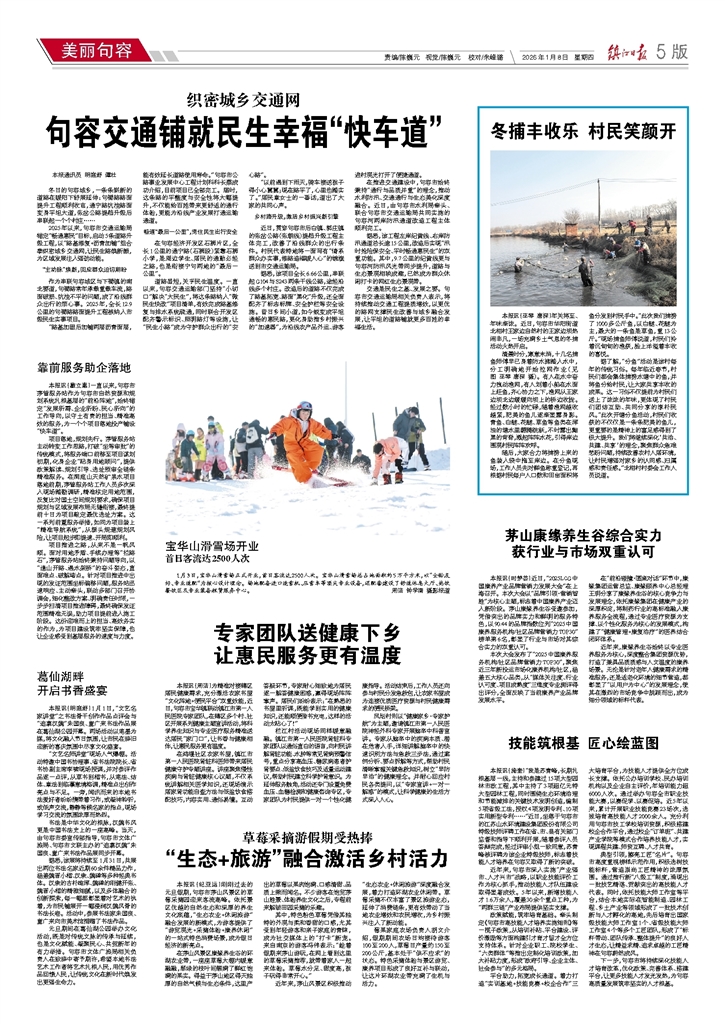 - “生态+旅游”融合激活乡村活力 本报讯(纪亚运)刚刚过去的元旦假期,句容市茅山风景区的草莓采摘园迎来客流高峰。依托景区优越的自然生态和深厚的养生文化底蕴,“生态农业+休闲旅游”融合发展的新模式,为游客提供