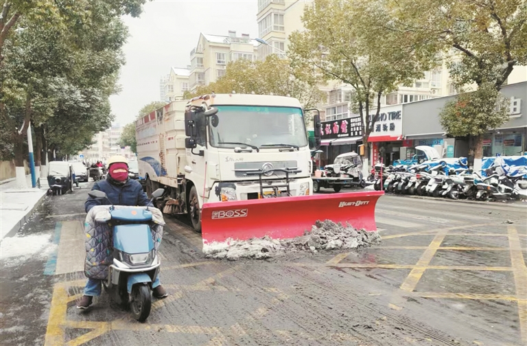 此次扫雪除冰行动中,镇江交警充分发挥道路交通安全主力军作用,与“一路三方”各部门紧密联动、高效协同。