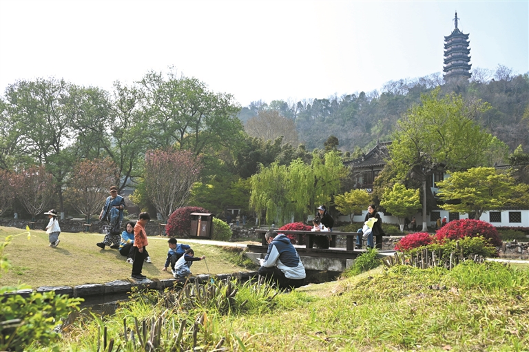 金山、焦山等景区同样热闹。在金山景区,京口实验小学约1500名学生走进景区,在大草坪上开展集体活动,有的席地而坐分享零食,有的三五成群开展游戏,也有学生跟随老师探访古迹、品读历史;在焦山景区,恒顺实验小学、谏壁小学的学生们亲近山林、观察春景,在自然课堂中感受万物生长的气息。